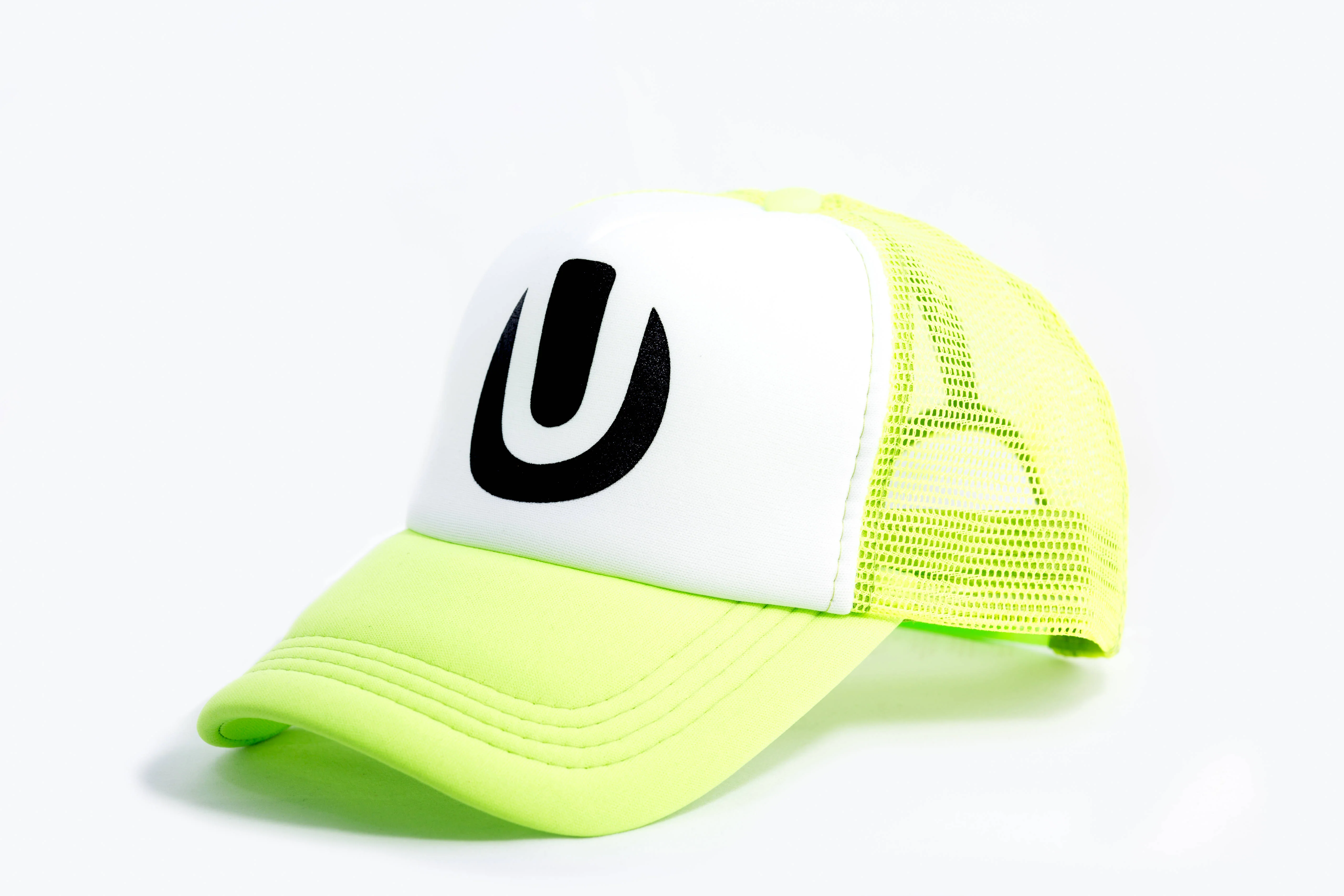 Bright neon trucker hats are great for when you really want to stand out. Day or night it's easy to spot someone wearing one of our neon trucker hats. It's constructed with a foam front and mesh back. The black screen printed Ultra logo is located above the brim on the front. One size fits most people with adjustable snap straps.